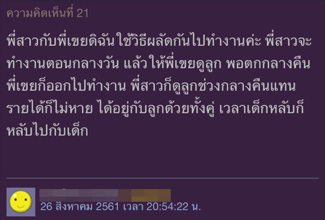 รวมถึงเวลาลูกร้องก็ต้องทิ้งหน้าที่ทำงานมาดูแลลูก