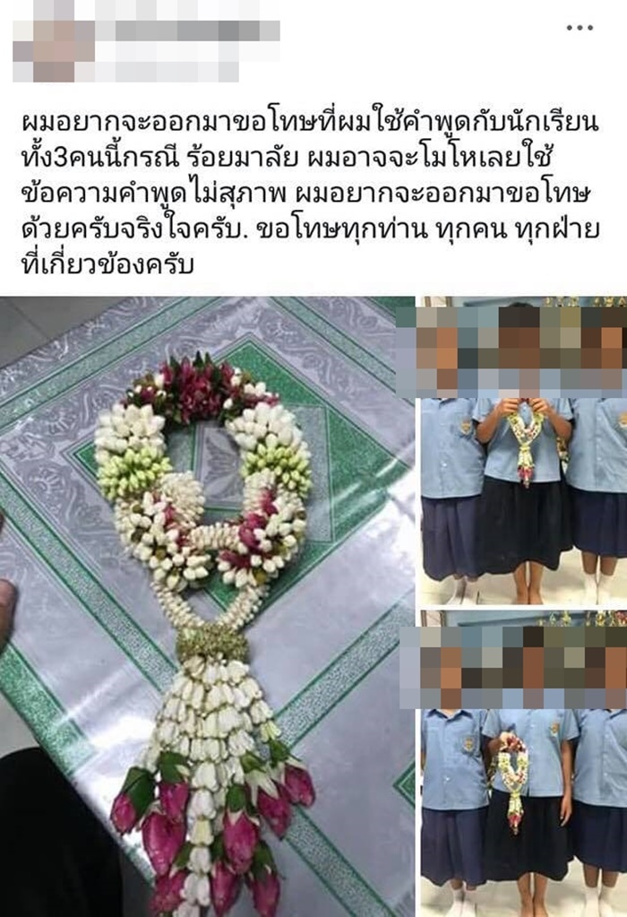 ครูโมโหนักเรียนร้อยมาลัยไม่ได้ โพสต์ด่าว่า เ- กลางเฟซบุ๊ก)