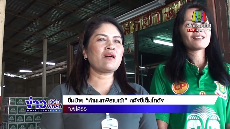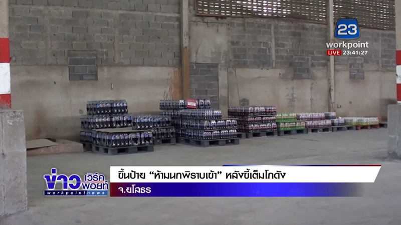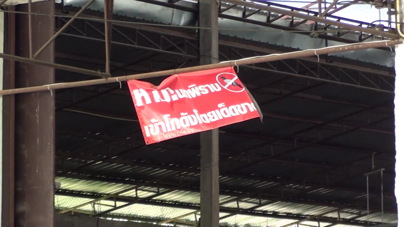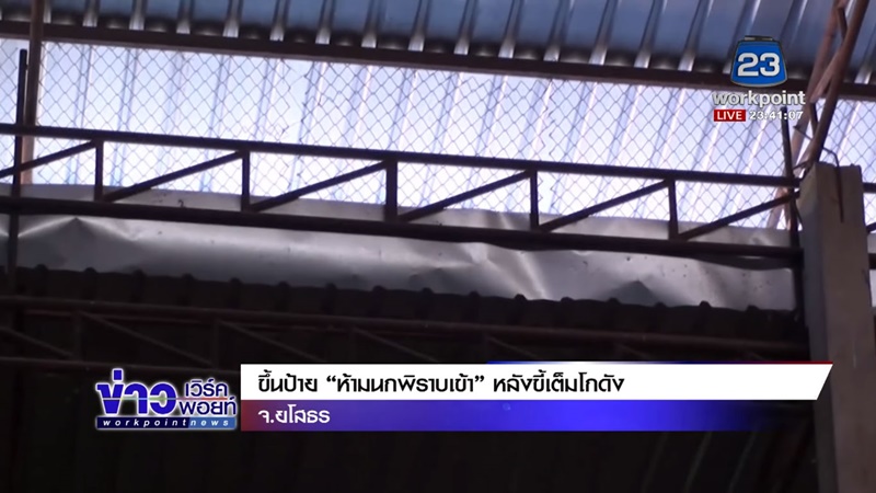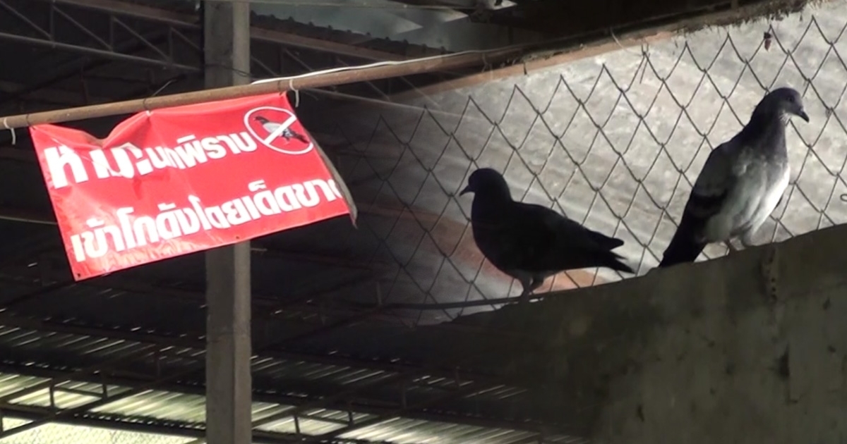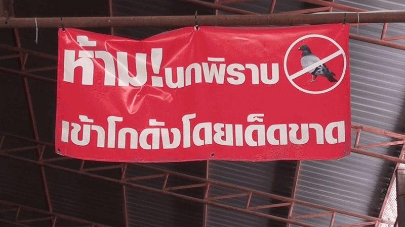 "ห้ามนกพิราบเข้าโกดังโดยเด็ดขาด" บริเวณทางเข้าโกดัง
