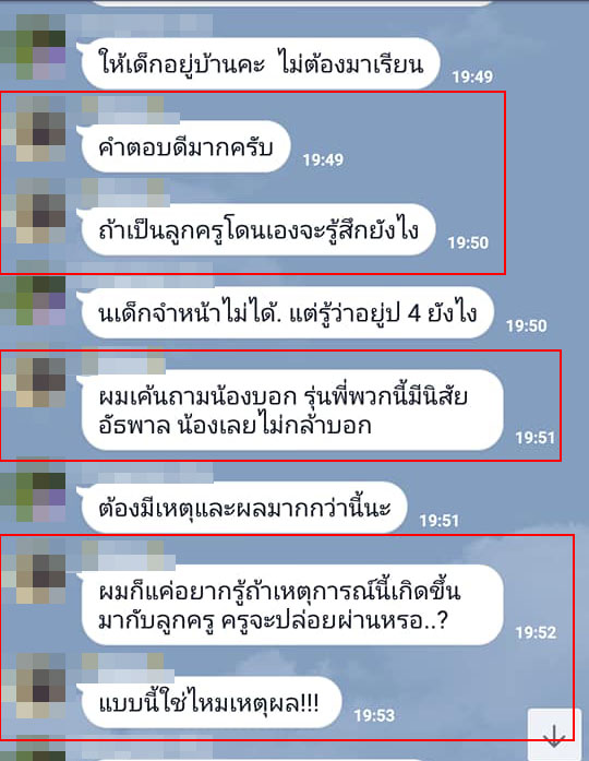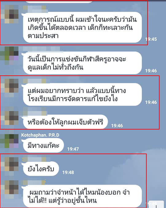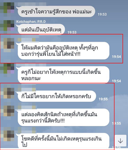 สำหรับบทสนทนานั้น ตรงกรอบแดงเป็นข้อความจากฝั่งผู้ปกครอง