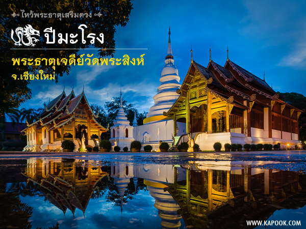 พระธาตุประจําปีเกิด ปีมะโรง : งูใหญ่ => พระธาตุเจดีย์วัดพระสิงห์คำบูชาพระธาตุ (ตั้งนะโม 3 จบ)