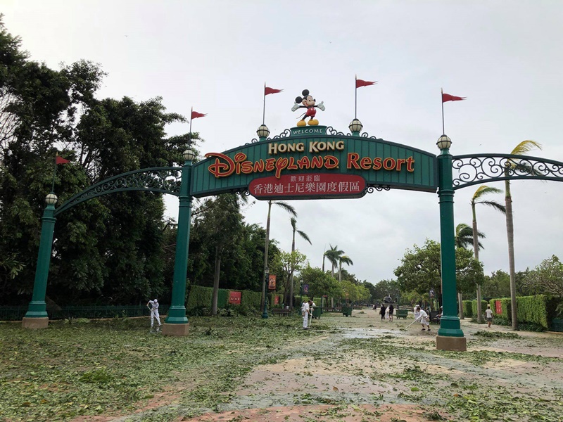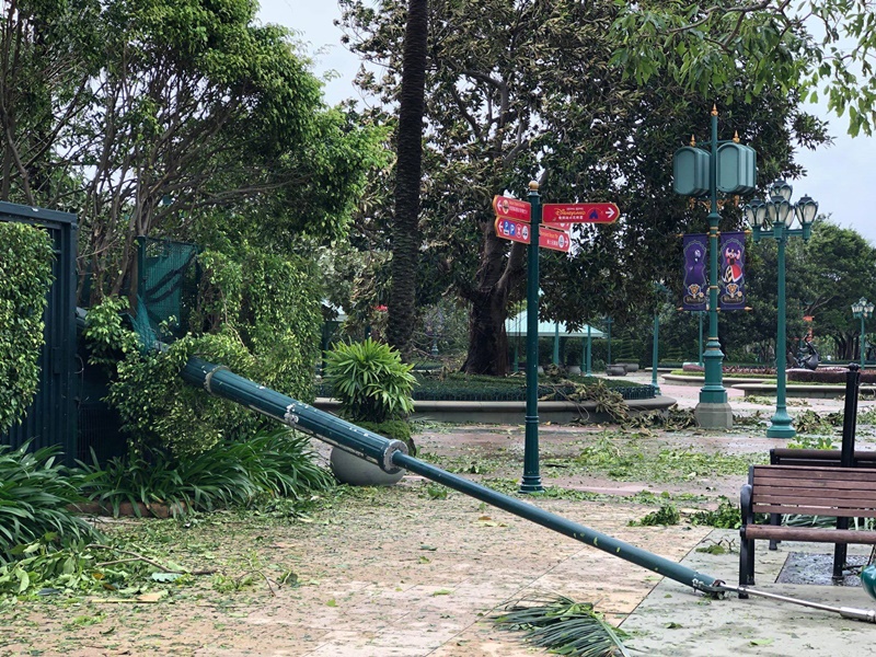เผยภาพสวนสนุกชื่อดัง Hong Kong Disneyland หลังเผชิญฤทธิ์ ซูเปอร์ไต้ฝุ่นมังคุด ทำต้นไม้-เสาไฟฟ้าล้มหักขวางกลางถนน เศษต้นไม้ใบไม้เกลื่อน