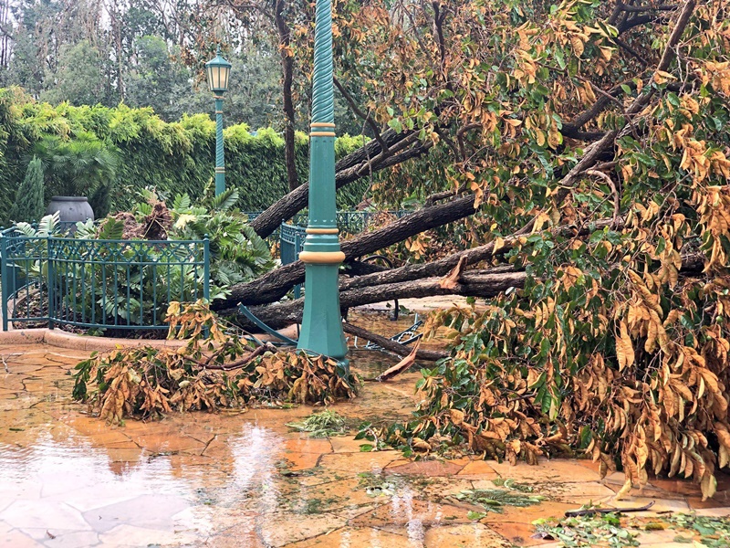 จนต้องปิดทำการในวันนี้ สภาพเละเทะ ต้นไม้-เสาไฟฟ้าล้มหักขวางถนน