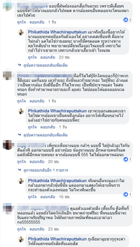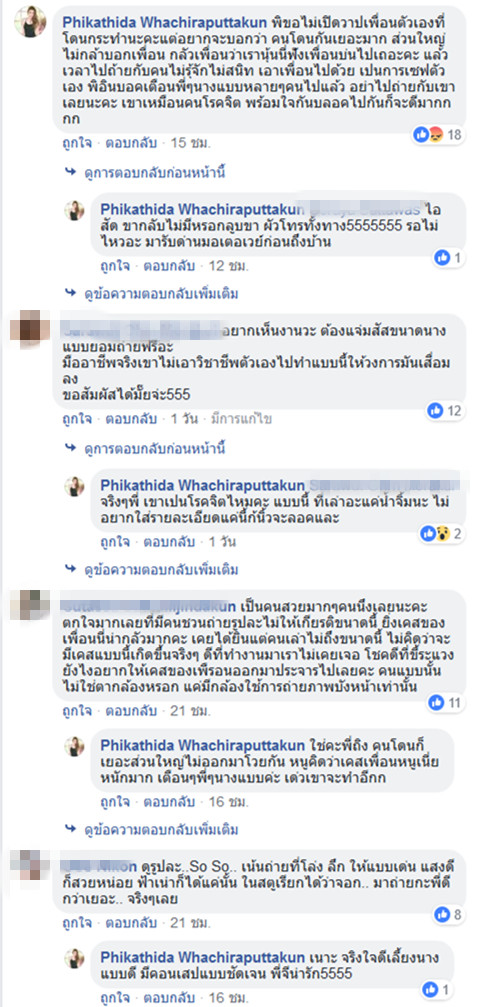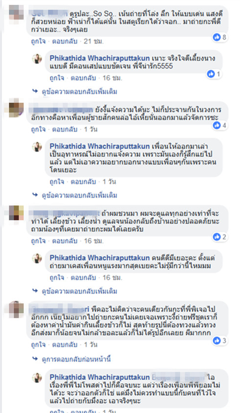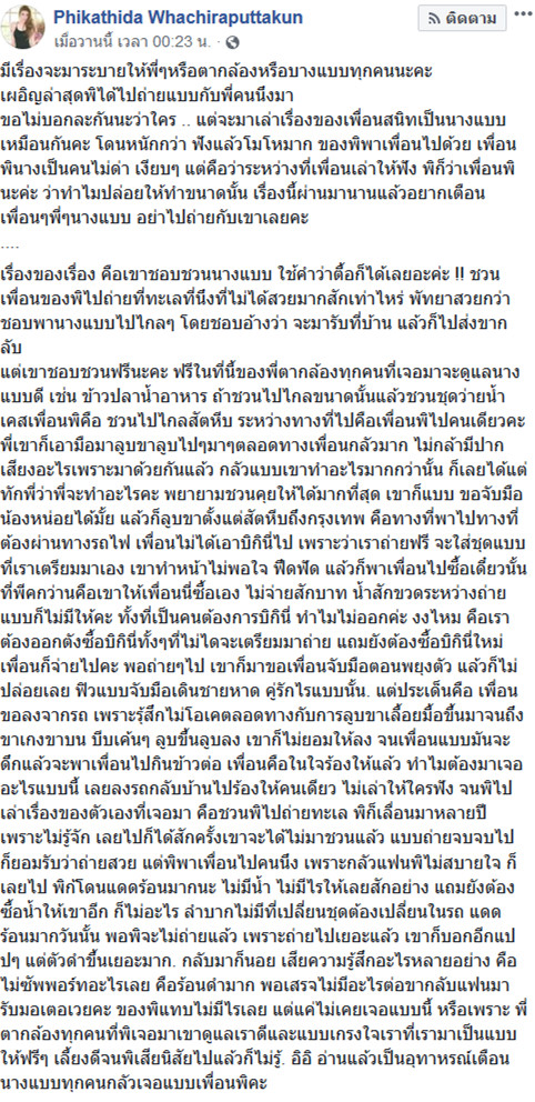 เมื่อวันที่ 21 กันยายน 2561 เฟซบุ๊ก Phikathida Whachiraputtakun นางแบบและสาว FHM โพสต์เหตุการณ์เตือนใจและเป็นอุทาหรณ์ให้กับเหล่านางแบบและช่างภาพ เมื่อตกลงจะเป็นแบบให้กับช่างภาพรายหนึ่ง แต่สิ่งที่เจอกลับทำให้เธอโมโหมาก