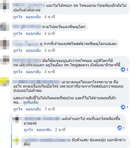 สร้างความไม่พอใจให้กับชาวเน็ตมากมายและเกิดการวิพากษ์วิจารณ์อย่างกว้างขวาง ซึ่งหลาย ๆ คนถามว่าโรงพยาบาลที่ไหน แต่เจ้าของเรื่องไม่สามารถบอกได้เนื่องจากอาจจะโดนฟ้องได้ ซึ่งขณะนี้ทางโรงพยาบาลทราบเรื่องและกำลังดำเนินการต่อไป