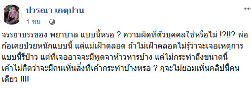 เหตุการณ์นี้เกิดขึ้นเมื่อวันที่ 25 กันยายน 2561 เจ้าของเฟซบุ๊ก ปวรณา เกตุปาน ได้โพสต์คลิปขณะกำลังนั่งเฝ้าคนไข้อยู่ ภาพที่เห็นคือพยาบาลสาวท่านหนึ่ง กำลังทำร้ายลุงที่นอนป่วยแถมใส่ท่อหายใจอย่างที่เห็นในคลิป พร้อมกับระบุไว้ว่า "จรรยาบรรณของ พยาบาล แบบนี้เหรอ ? ความผิดที่ตัวบุคคลใช่หรือไม่ !?!!? พ่อก็เคยป่วยหนักแบบนี้"