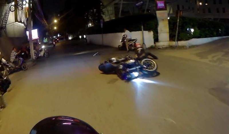 แต่กลับถูกรถมอเตอร์ไซค์อีกคันแซงขวาชนจนล้ม แต่คู่กรณีกลับขี่รถหนี