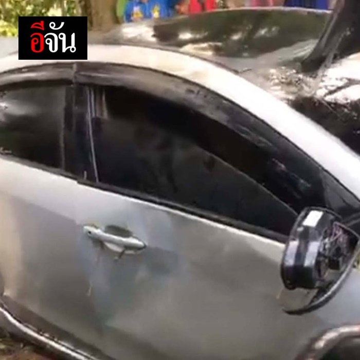 พบว่าด้านในรถมีร่างของหญิงสาวติดอยู่ด้านในบริเวณเบาะหลัง