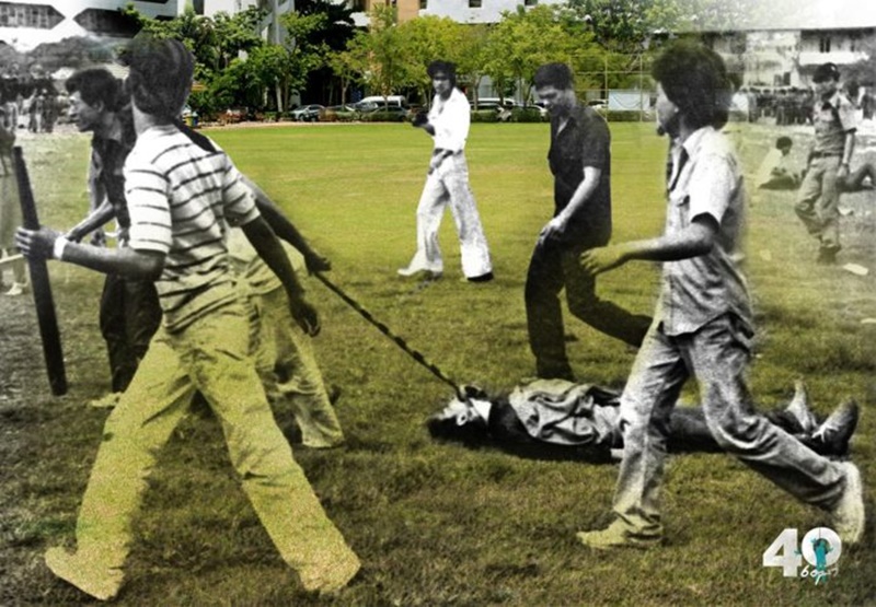 นวพล ใช้เชือกผูกคอลากศพไปกลางสนามฟุตบอลธรรมศาสตร์ จนกลายเป็นภาพสลด