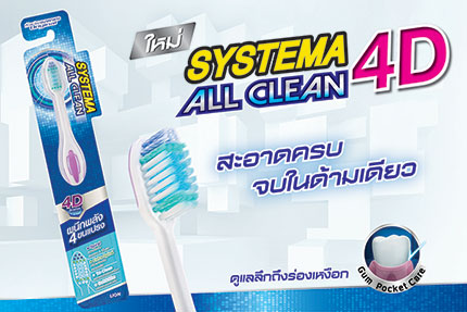 บริษัท ไลอ้อน (ประเทศไทย) จำกัด แนะนำผลิตภัณฑ์ใหม่ แปรงสีฟัน ซิสเท็มมา ออลคลีน (Systema All Clean) ซึ่งถือเป็นครั้งแรกของการนำ 4 ขนแปรงที่ดีที่สุดจากซิสเท็มมา มารวมในด้ามเดียว ซึ่งการผนึกพลัง 4 ขนแปรง เพื่อ 4 คุณประโยชน์ ได้แก่