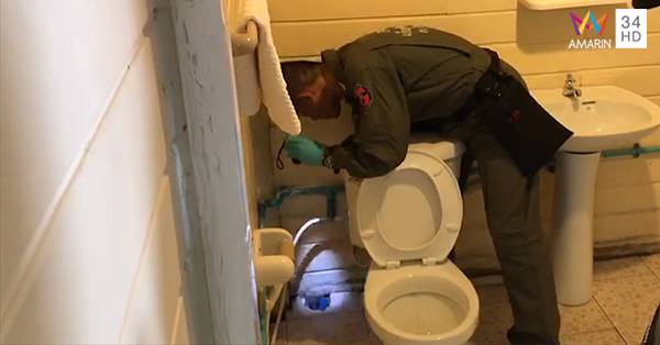ซึ่งผลการตรวจสอบ พบว่า มีระเบิดเอ็ม 79 (ลูกเกลี้ยง) 2 ลูก ในห้องน้ำ