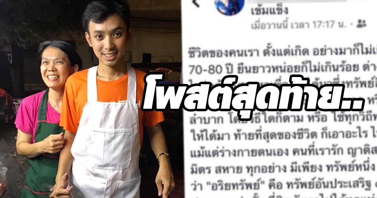 เปิดโพสต์สุดท้าย นศ. ปี 4 อุเทนถวาย ก่อนถูกยิงดับขณะช่วยงานแม่ขายราดหน้า ระบุท้ายที่สุดของชีวิตก็เอาอะไรไปไม่ได้ แม้แต่ร่างกายตนเอง