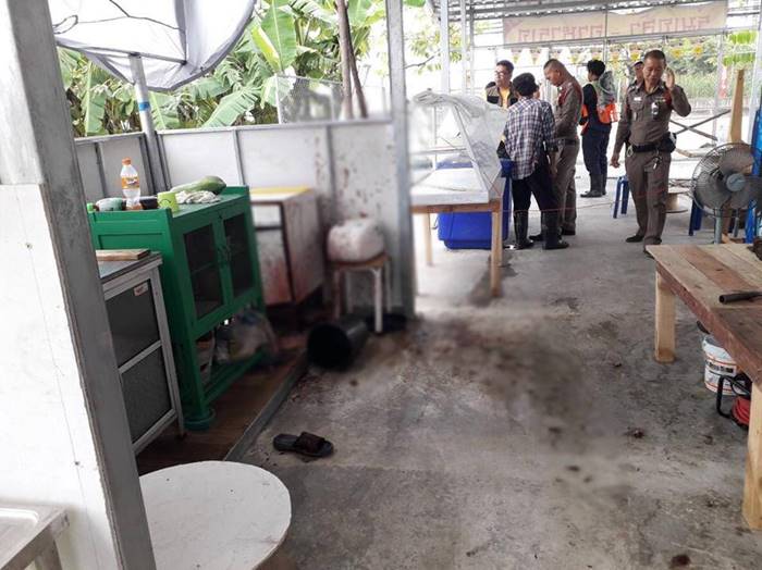 เจ้าหน้าที่พบคราบเลือดกระเด็นเปรอะเปื้อนบริเวณที่วางหม้อหุงข้าว