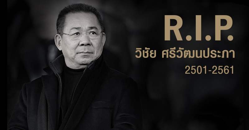 เมื่อวันที่ 29 ตุลาคม 2561 สโมสรเลสเตอร์ ซิตี้ ได้เผยแถลงการณ์ ถึงการจากไปของประธานสโมสร คุณวิชัย ศรีวัฒนประภา ว่า ขณะนี้ คุณวิชัย ได้เสียชีวิตแล้ว จากเหตุเฮลิคอปเตอร์ตก ที่ข้างสนามคิง เพาเวอร์ สเตเดี้ยม เมื่อวันที่ 28 ตุลาคม 2561