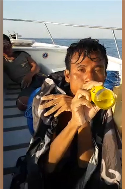 วันที่ 1 พฤศจิกายน 2561 เจ้าของเฟซบุ๊ก Arthit Kung ได้โพสต์คลิปหลังจากเจ้าตัวออกเรือหาปลาเพื่อทำอาหาร แต่กลับเจอชายหนุ่ม 2 คน ลอยคออยู่กลางทะเล โดยเหตุจากเรือลากหมึกล่มตั้งแต่เที่ยงคืนที่ผ่านมา โดยยังเผยอีกว่าชายทั้งสองต้องการไปโรงพยาบาล ทำให้ต้องรีบเข้าฝั่งเพื่อช่วยเหลือให้ทัน