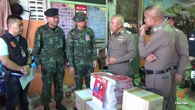 ตำรวจ-ทหาร นำกำลังบุกยึดปฏิทิน ทักษิณ-ยิ่งลักษณ์ คุมตัวเจ้าของบ้านสอบปากคำ ชี้ เป็นผู้ต้องหาหนีคดี ไม่ควรนำมาเผยแพร่