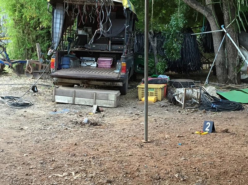 โดยที่เกิดเหตุพบว่า มีการกางเต็นท์และกำลังเดินสายติดตั้งไฟฟ้าเพื่อเตรียมจะจัดงานศพ จากการตรวจสอบพบปลอกกระสุนปืนลูกซองตกอยู่ 5 นัด บริเวณลานหน้าบ้านข้างโอ่งน้ำพบร่างผู้เสียชีวิต 1 ราย คือ ด.ช.ภูบดี ศิริพันธ์ุ อายุ 14 ปี ถูกยิงด้วยอาวุธปืนลูกซองเข้าที่หน้าอกนอนเสียชีวิต นอกจากนี้มีผู้ที่ได้รับบาดเจ็บสาหัสอีก 1 ราย คือ นายไชยเชษฐ์ ชูแสง เจ้าของเครื่องไฟ เจ้าหน้าที่จึงเร่งนำตัวส่งโรงพยาบาล
