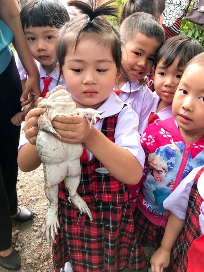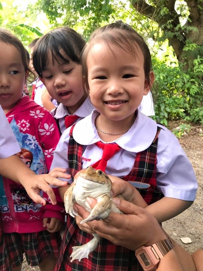 ยังได้สัมผัสกบด้วย ทุกคนดูสนุกสนานและไม่กลัวเลย