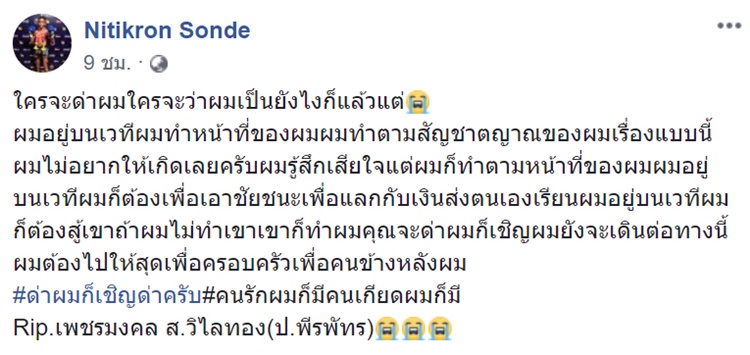 ปี คู่ต่อสู้ที่ขึ้นชกกับน้องเล็ก กระทั่งน้องพุฒออกมาโพสต์ข้อความระบุว่า
