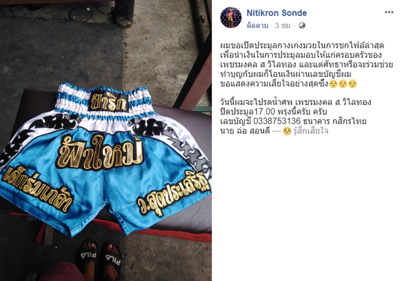 นอกจากนี้ น้องพุฒยังนำกางเกงมวยที่ใส่ขึ้นชกบนเวทีราชดำเนินออกประมูล