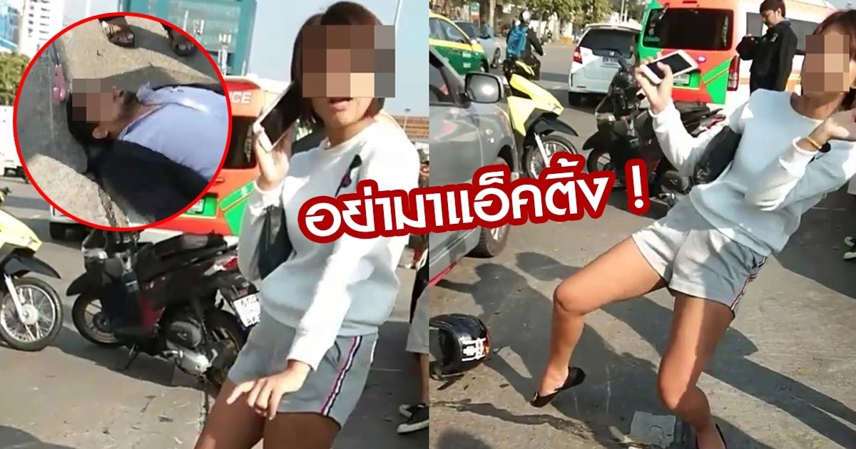 ทั้งนี้ ผู้ใช้เฟซบุ๊ก ตงเร่ก สุขสวัสดิ์ ได้มีการไลฟ์เฟซบุ๊กเปิดเผยเหตุการณ์ขณะสาวที่มาในรถยนต์คู่กรณี ลงจากรถมายืนด่า และกล่าวหาหนุ่มคนเจ็บขณะนอนนิ่งขยับตัวไม่ได้อยู่กลางถนน ว่าเป็นการแสดง แกล้งว่าได้รับบาดเจ็บหนักด้วยถ้อยคำหยาบคาย พร้อมกล่าวอ้างถึงสูตรคณิตศาสตร์ในลักษณะวกไปวนมา ท่ามกลางเจ้าหน้าที่ตำรวจและเจ้าหน้าที่กู้ภัยที่กำลังให้การช่วยเหลือคนเจ็บ ต่างจากชายที่มาด้วยกันซึ่งเป็นคนขับ ที่พยายามให้การช่วยเหลือและดูแลคนเจ็บอย่างเต็มที่