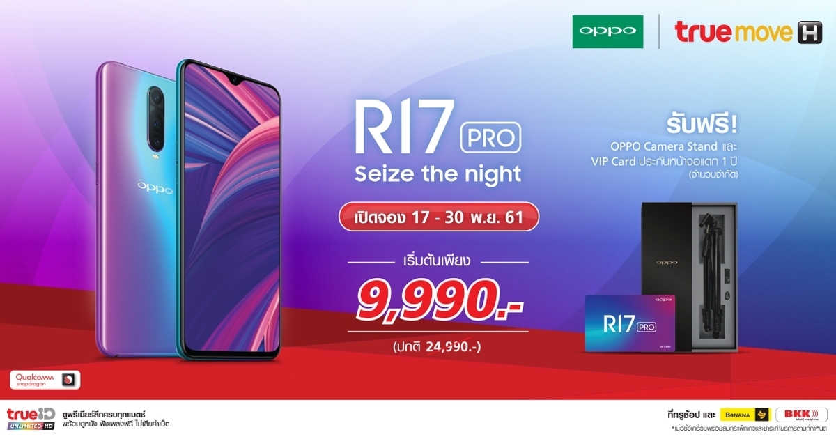 สามารถสอบถามรายละเอียด OPPO R17 Pro เพิ่มเติมได้ที่ ทรูช้อป ทุกสาขา และเว็บไซต์หลักออปโป้ https://www.oppo.com/th/