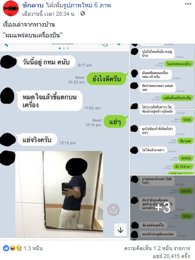 เรื่องราวสุดฮาและน่าสงสารเกิดขึ้นเมื่อวันที่ 18 พฤศจิกายน 2561 เมื่อเพจเฟซบุ๊ก ชักดาบ ได้โพสต์เหตุการณ์จากลูกเพจท่านหนึ่ง ซึ่งเกิดอุจจาระออกมาเล็กน้อย ขณะนั่งบนเครื่องบินที่กำลังเทกออฟไม่นาน