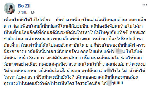 สาวโพสต์ถูกหยอดยาเสียสาว จนเกือบเอาตัวไม่รอด โชคดีมีสติโทร. หาเพื่อนได้ทันกาล ซึ่งรู้ตัวคนกระทำแต่ไม่มีใครกล้าแจ้งความ
