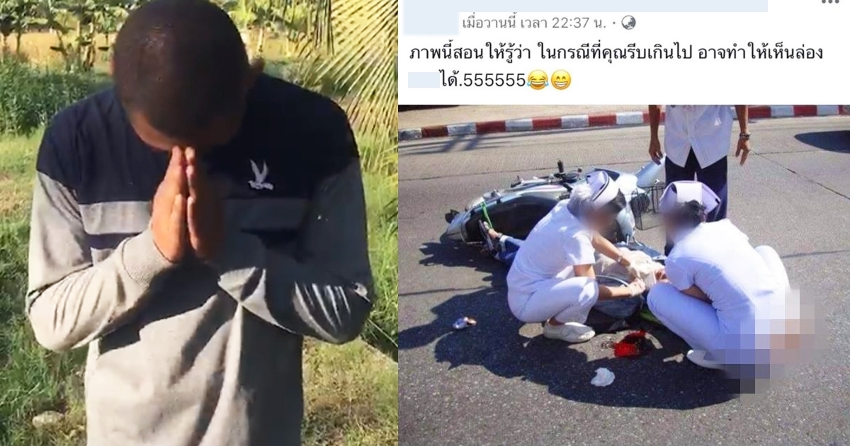 สังคมโซเชียลพากันวิจารณ์อย่างหนัก ถึงพฤติกรรมของพลทหารรายหนึ่งที่ได้โพสต์คลิปของพยาบาลสาว 2 คน ขณะกำลังช่วยเหลือผู้บาดเจ็บจากอุบัติเหตุอย่างขะมักเขม้น จนทำให้ขอบกางเกงข้างหลังรั้งต่ำลง แต่พลทหารรายนี้กลับโพสต์อย่างสนุกปากว่า "ภาพนี้สอนให้รู้ว่า ในกรณีที่คุณรีบเกินไป อาจทำให้เห็นร่อง Xาก ได้ 555555"