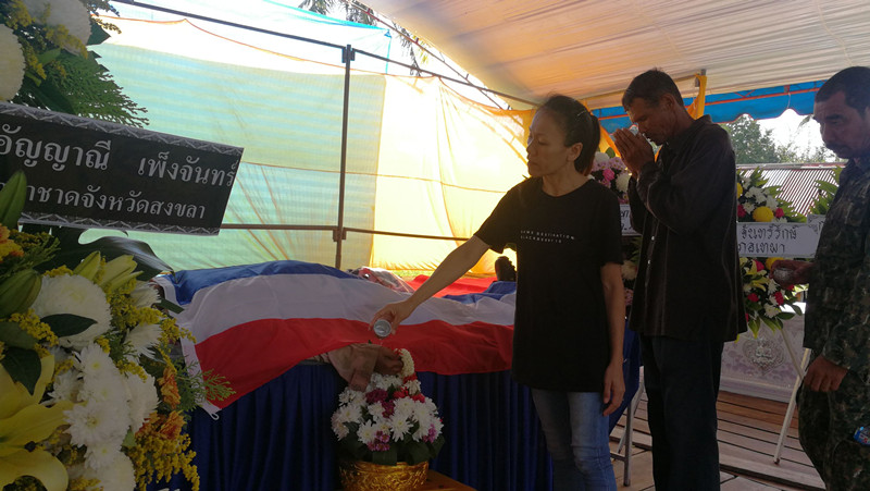 สมเด็จพระเจ้าอยู่หัว โปรดเกล้าฯ พวงมาลาพระราชทาน พิธีศพเจ้าหน้าที่ชุดคุ้มครองตำบลท่าม่วง ถูกโจรใต้ยิงเสียชีวิต บรรยากาศโศกเศร้า ลูกชายเพิ่งอายุขวบกว่า