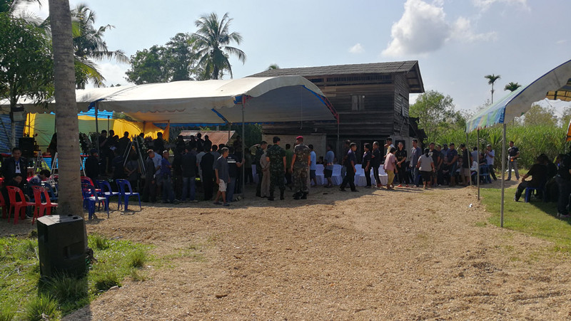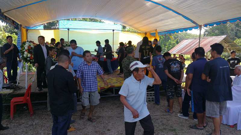 วันที่ 26 พฤศจิกายน 2561 บรรยากาศในงานศพของ อส.จรัญ จันทมณี อายุ 46 ปี เจ้าหน้าที่ชุดคุ้มครองตำบลท่าม่วง ที่เสียชีวิตจากเหตุการณ์ถูกคนร้ายลอบยิงขณะปฏิบัติหน้าที่รักษาความปลอดภัยตลาดนัดท่าหยี ซึ่งมีเจ้าหน้าที่เสียชีวิต 3 ราย เต็มไปด้วยความเศร้า ญาติได้จัดพิธีรดน้ำศพขึ้นที่บ้านเลขที่ 77 หมู่ 14 ต.ท่าม่วง อ.เทพา ซึ่งเป็นบ้านเกิด ศพถูกคลุมด้วยธงชาติอย่างสมเกียรติ โดยมีผู้บังคับบัญชา เพื่อนร่วมงาน ญาติและชาวบ้านมาร่วมรดน้ำศพและแสดงความอาลัย