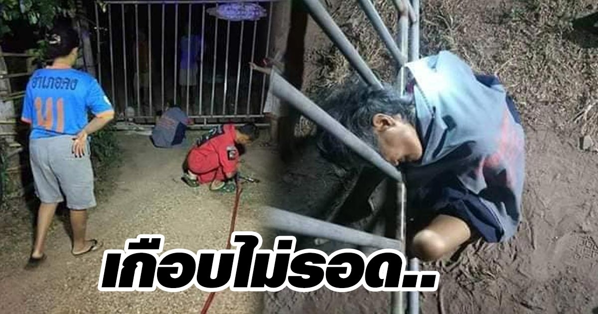 กู้ภัยรุดช่วยหญิง วัย 48 หัวติดคาประตูรั้วเหล็กนานนับ 9 ชั่วโมง นอนบาดเจ็บหายใจรวยรินอยู่หน้าบ้าน ญาติเผยคาดเมาหนักและเดินสะดุดล้ม