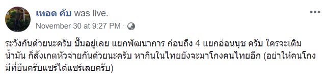 เมื่อวันที่ 30 พฤศจิกายน 2561 ผู้ใช้เฟซบุ๊ก เทอด คับ