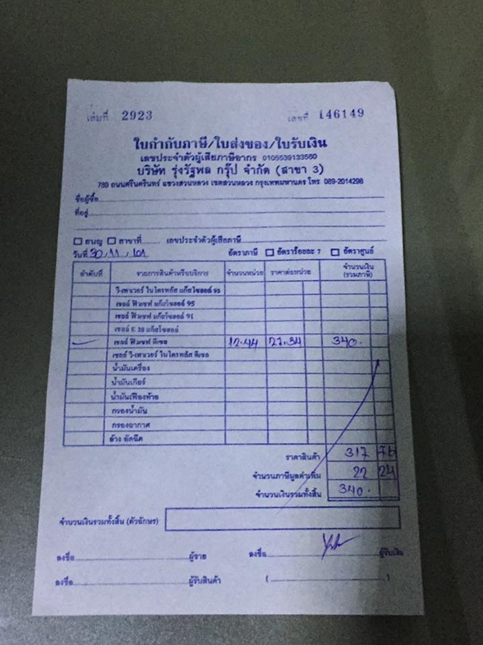 ทางปั๊มก็ออกบิลเงินสดให้หนุ่มเจ้าของรถเป็นเงิน 340 บาท