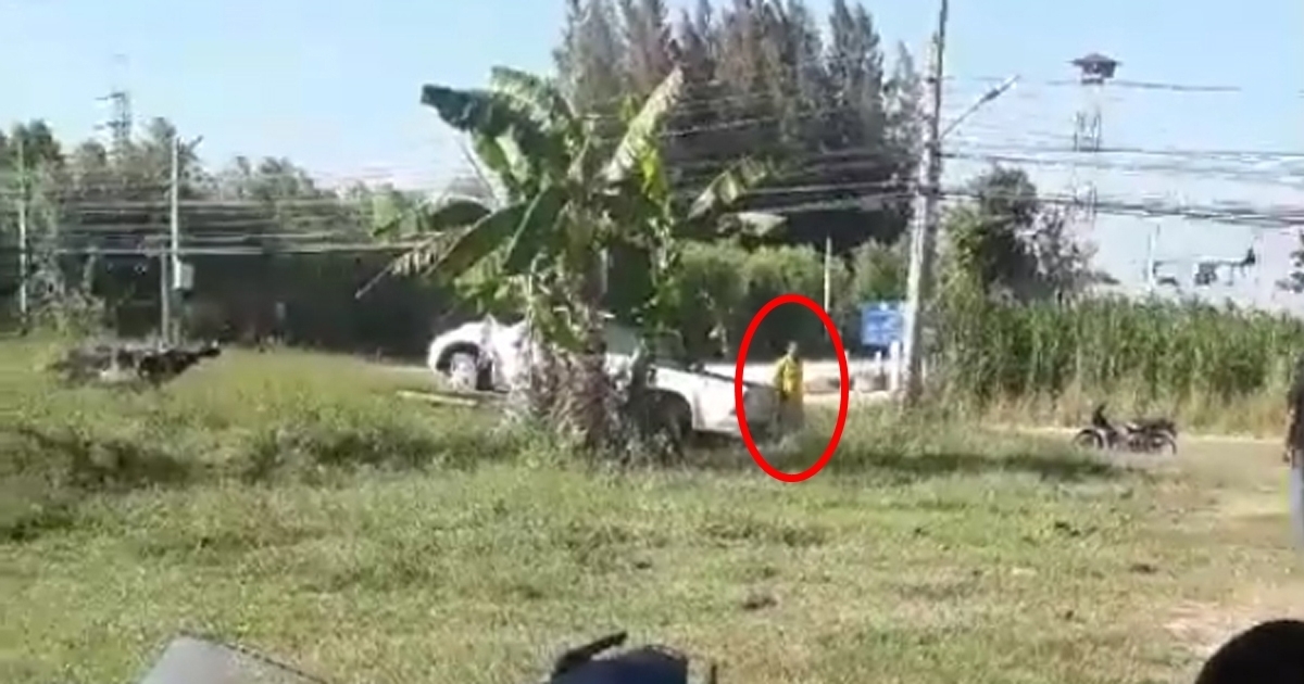 นายมี มิตระกูล ชาวบ้านผู้เห็นเหตุการณ์ เล่าว่า เหตุการณ์ดังกล่าวเกิดขึ้นเมื่อวันที่ 25 พฤศจิกายน ที่ผ่านมา โดยในเวลาประมาณ 15.00 น. ตนและญาติกำลังช่วยกันจัดงานศพอยู่ที่หลังที่ทำการกองทุนหมู่บ้าน คนในกองทุนฯได้วิ่งออกมาพวกตน บอกว่าพบเห็นรถกระบะคันหนึ่งขับมาชนศาลเจ้าจนเสียหาย ก่อนจะขับรถหนีไป ตนจึงได้ออกไปดู และประมาณ 20 นาทีต่อมา รถกระบะคันเดิมก็ขับย้อนกลับมาอีก เข้ามาพุ่งศาลเจ้าอีก และขับเหยียบศาลเจ้าซ้ำ ๆ หลายครั้ง จนรถไปติดบริเวณเนินดิน ไม่สามารถถอยหลังกลับออกมาได้