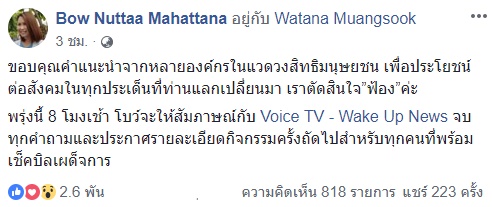 พรุ่งนี้ 8 โมงเช้า โบว์จะให้สัมภาษณ์กับ Voice TV - Wake Up News จบทุกคำถามและประกาศรายละเอียดกิจกรรมครั้งถัดไปสำหรับทุกคนที่พร้อมเช็กบิลเผด็จการ