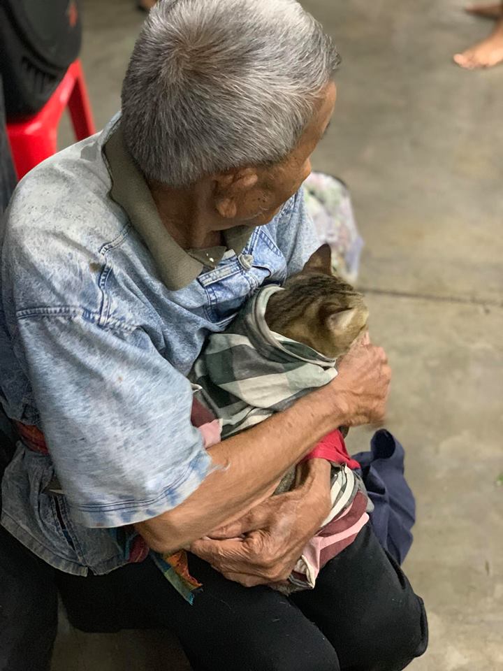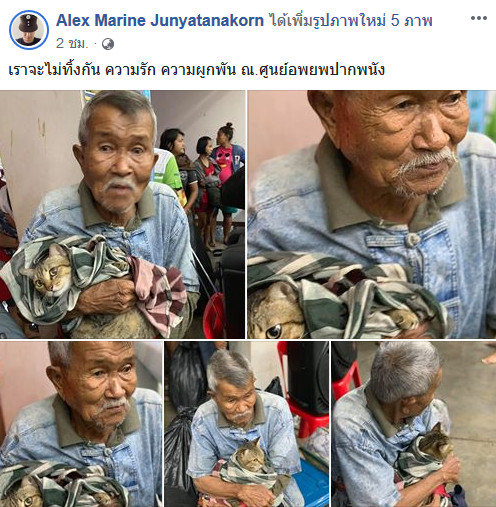 ล่าสุด เล็ก ฝันเด่น ได้โพสต์ภาพคุณลุงท่านหนึ่งใบหน้าเต็มไปด้วยความเหนื่อยล้า และสองมือกำลังอุ้มแมวตัวหนึ่งอย่างทะนุถนอม พร้อมระบุว่า "เราจะไม่ทิ้งกัน ความรัก ความผูกพัน ณ.ศูนย์อพยพปากพนัง"