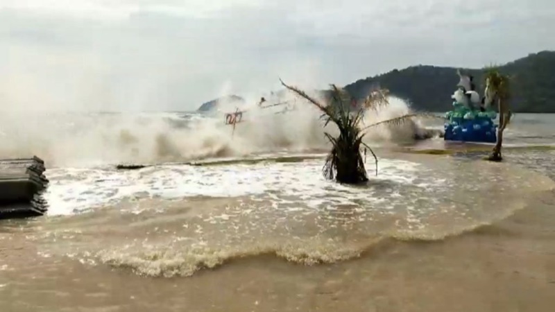 ทั้งนี้ ผลการตรวจสอบ พบว่า มีบ้านเรือนเสียหายจากคลื่นซัดกว่า 30 หลังคาเรือน, เรือประมงจมทะเล 10 ลำ และรีสอร์ตเสียหาย 5 หลัง