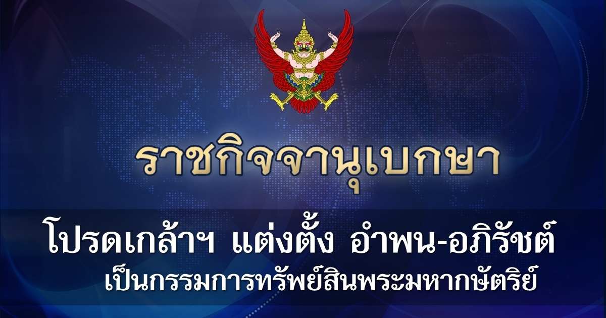 ในหลวง ร.10 โปรดเกล้าฯ แต่งตั้ง นายอำพน กิตติอำพน และ พล.อ. อภิรัชต์ คงสมพงษ์ เป็นกรรมการทรัพย์สินพระมหากษัตริย์ พร้อมแต่งตั้งที่ปรึกษาใหม่