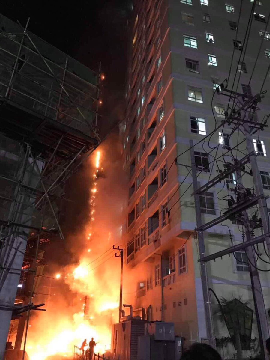 โดยเพลิงลุกไหม้ลุกลามทั่วบริเวณชั้นที่ 1-10 ของอาคาร