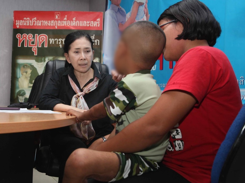 ขวบ เข้าร้องทุกข์ต่อนางปวีณา หงสกุล ประธานมูลนิธิปวีณาฯ ว่าลูกชายถูก