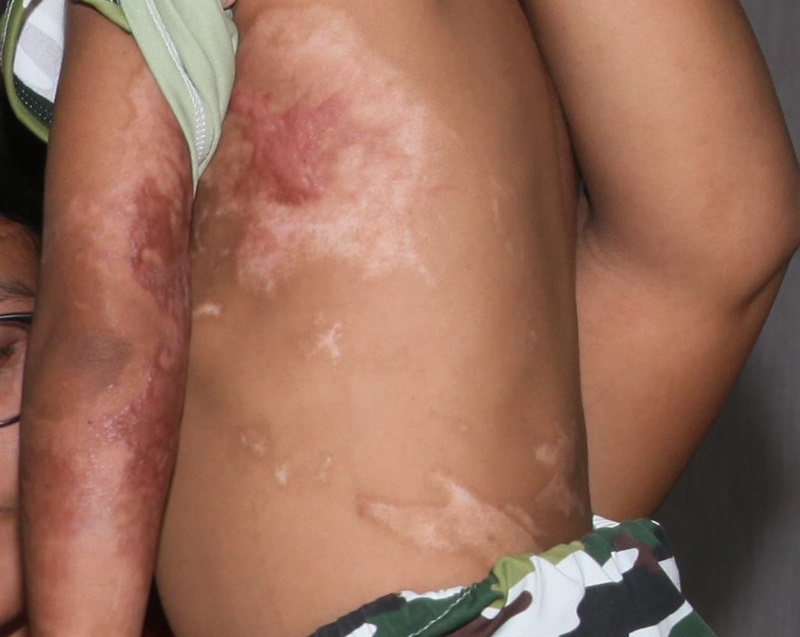 โดยนางแหม่ม เล่าว่า หลังตนเลิกรากับสามีก็ได้ฝากลูกชายไว้กับย่า อายุ 58 ปี ที่ จ.กำแพงเพชร และตนได้มีสามีใหม่ทำงานขับรถส่งของตามต่างจังหวัด นาน ๆ จะไปเยี่ยมลูกสักครั้ง แต่ก็ส่งเงินให้ลูกทุกเดือน กระทั่งเมื่อช่วงปีใหม่ที่ผ่านมาตนเดินทางไปเยี่ยมลูกที่บ้านย่า ก็ต้องตกใจเมื่อพบว่าลูกชายมีสภาพรอยแผลเป็นเต็มตัว แต่ย่ากลับไม่เคยบอกว่าลูกเป็นอะไร เมื่อสอบถามย่าจึงเล่าว่าเมื่อวันที่ 12 ตุลาคม 2561 ด.ช.เอก ลูกของเพื่อนบ้าน นำเอาน้ำมันเบนซินใส่ขวดน้ำอัดลมแล้วจุดไฟก่อนจะเตะขวดใส่ลูกชาย จนไฟลุกติดตามตัว ต้องวิ่งหนีไปกระโดดลงอ่างน้ำ เพื่อนบ้านผ่านมาเห็นจึงไปตามย่าให้พาตัวส่งโรงพยาบาลรักษาตัวนานถึง 24 วัน