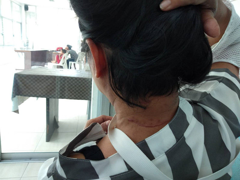นางน้อย เล่าต่อว่า เคราะห์ดีที่ลูกสาวตนที่นอนอยู่ใกล้ ๆ ได้ยินเสียง เลยไหว้อ้อนวอนนายหนุ่ม จนนายหนุ่มยอมหยุดก่อนจะชวนลูกสาวตนหนีไป แต่ลูกสาวไม่ไปด้วย นายหนุ่มจึงข่มขู่ห้ามแจ้งตำรวจก่อนจะหลบหนีไป แล้วรีบพาตนส่งโรงพยาบาล จากนั้นจึงเข้าแจ้งความที่ สน.โคกคราม หลังรักษาตัวที่โรงพยาบาลตนก็ไม่กล้ากลับไปอยู่ที่คอนโดแล้ว เพราะหวาดกลัว ถึงแม้ลูกเขยจะถูกจับกุมตัวไปแล้ว แต่ยังเป็นเยาวชนอยู่อาจจะได้รับการประกันตัว ตนเลยกลัวว่าจะย้อนกลับมาทำร้ายอีก