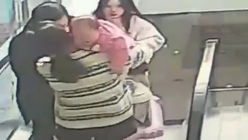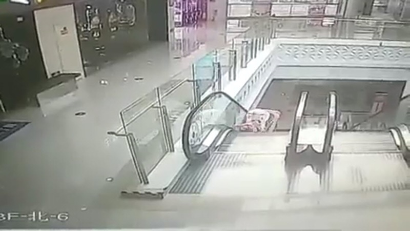 ภาพจากกล้องวงจรปิด เผยให้เห็นว่าบริเวณเคาน์เตอร์หน้าร้านก็ไม่มีคนอีกด้วย เด็กน้อยอยู่บนรถเข็นหัดเดินของเธอ เธอขยับเตาะแตะไปเรื่อย ๆ จนออกมานอกประตูร้าน และมุ่งหน้าไปยังบันไดเลื่อน ซึ่งทันทีที่พ้นขอบบันได้เลื่อนขาขึ้น เด็กหญิงก็ล้มคว่ำหัวทิ่มหัวตำอยู่ตรงนั้น