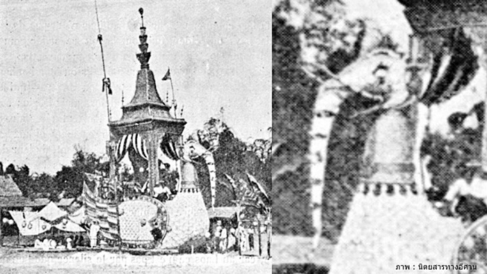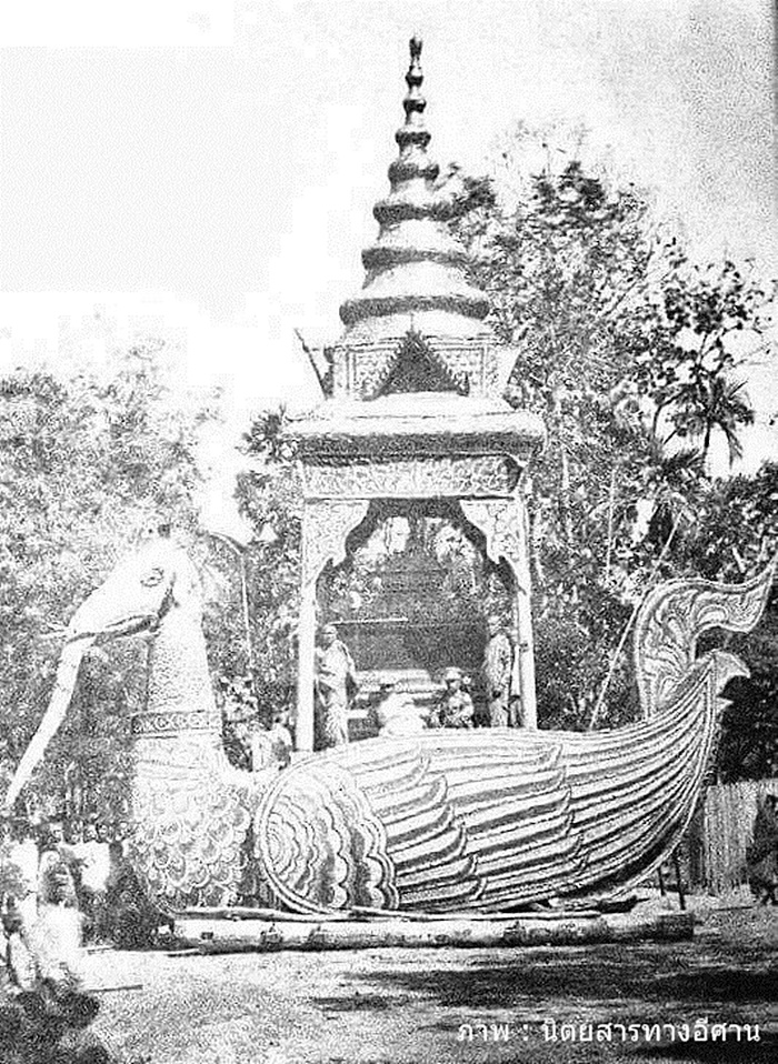 เมรุนกหัสดีลิงค์ พระอริยกวี (อ่อน ธมฺมรกฺขิโต) เจ้าคณะใหญ่เมืองอุบลราชธานี พ.ศ. ๒๔๔๖ ในบทความของ ดร.ฌอง บร็องก์