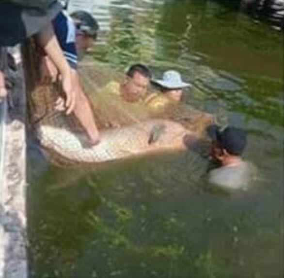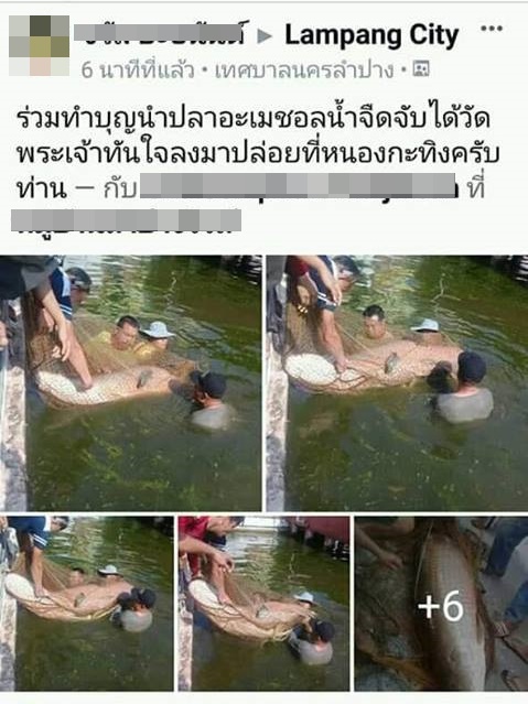โดยเป็นภาพขณะที่มีกลุ่มคนนำปลาอเมซอน ซึ่งระบุว่า