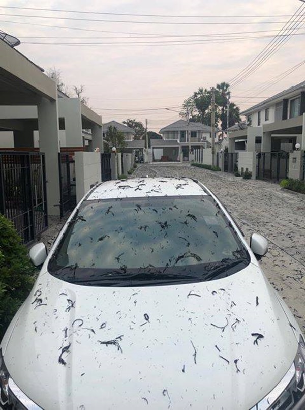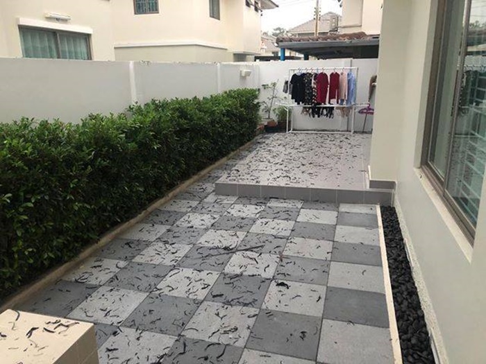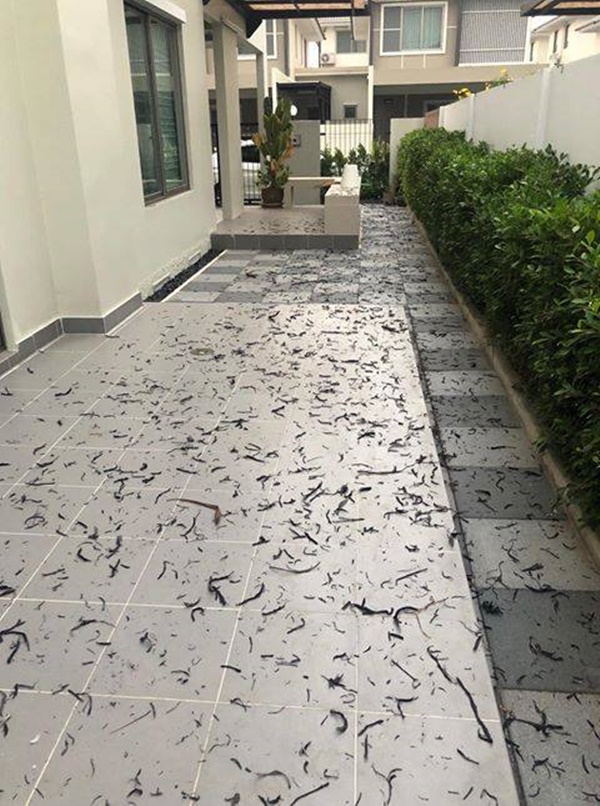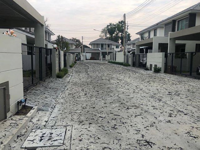 แฉภาพซากอ้อยลอยฟุ้งมาตามอากาศ เศษละอองสีดำลอยตกเกือบเต็มหมู่บ้านหรู จ.ชลบุรี เผากันทุกวันไม่สนวิกฤตฝุ่น