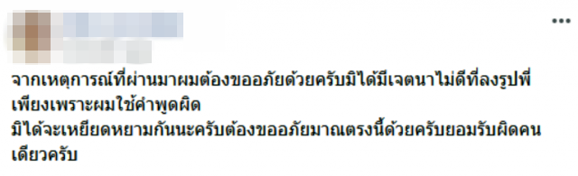 จนเจ้าตัวลบโพสต์ดังกล่าวออกไปแล้ว และโพสต์ชี้แจงระบุว่า "จากเหตุการณ์ที่ผ่านมาผมต้องขออภัยด้วยครับ