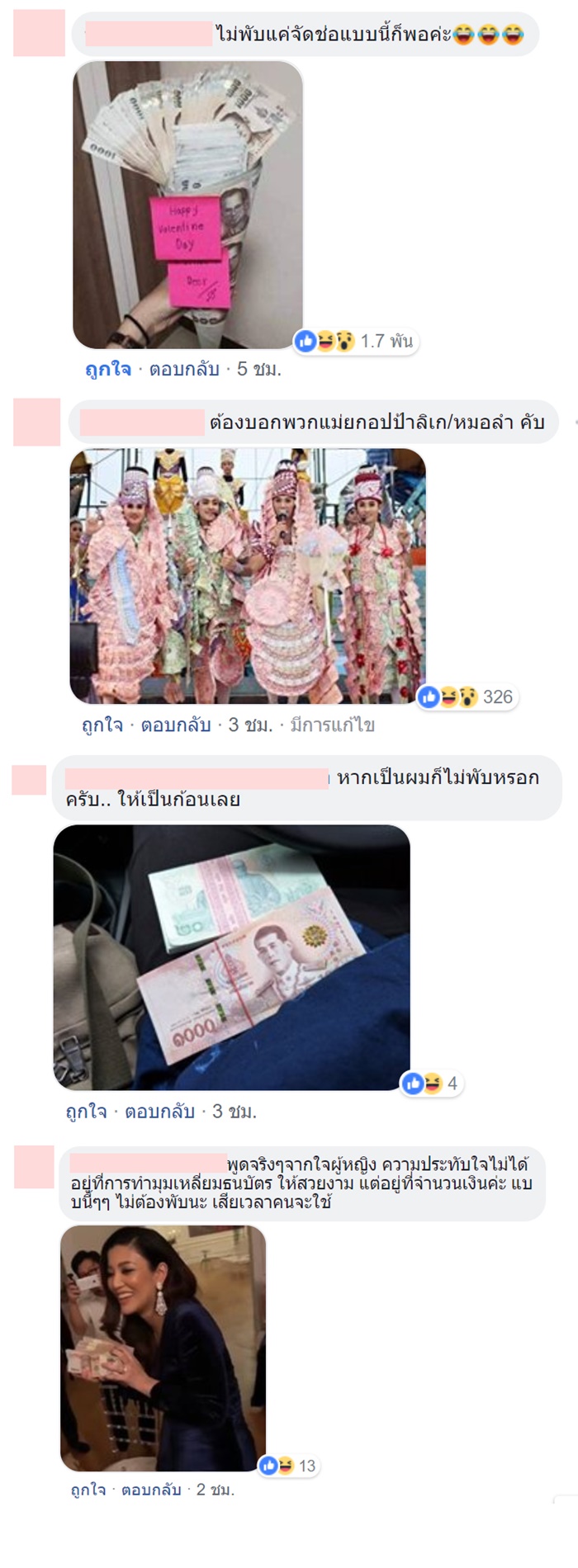 แต่บางคนมองว่าดอกกุหลาบมันธรรมดาเกินไป ก็จัดธนบัตรใบแดง ๆ