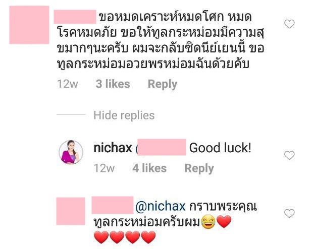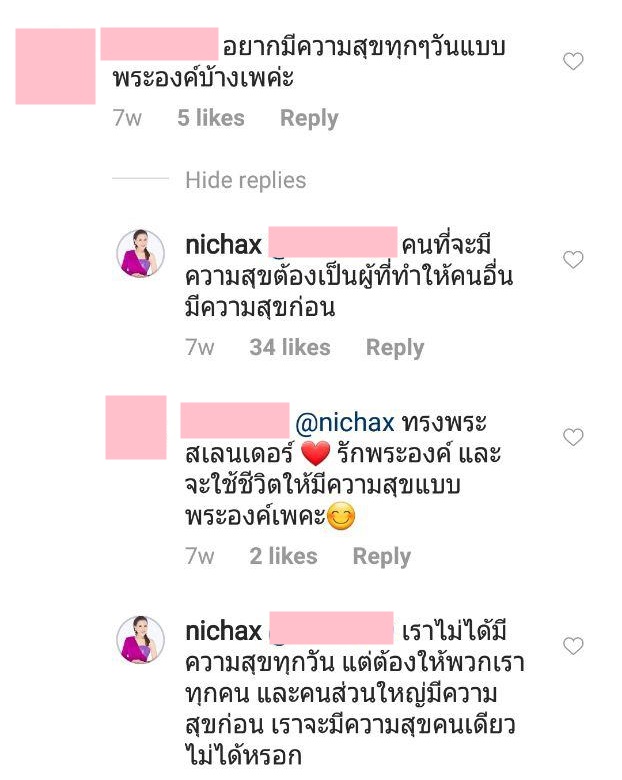 สิริวัฒนาพรรณวดี ได้รับสั่งตอบกลับคอมเมนต์ในอินสตาแกรมที่เข้ามาบอกว่า
